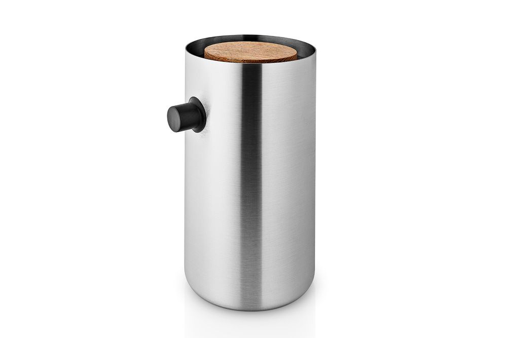 Kanden er fremstillet i rustfrit stål med et egetræslåg, der bryder med det stilrene design. Termostålindsatsen gør termokanden ekstra robust og er med til at holde kaffen varm i længere tid.