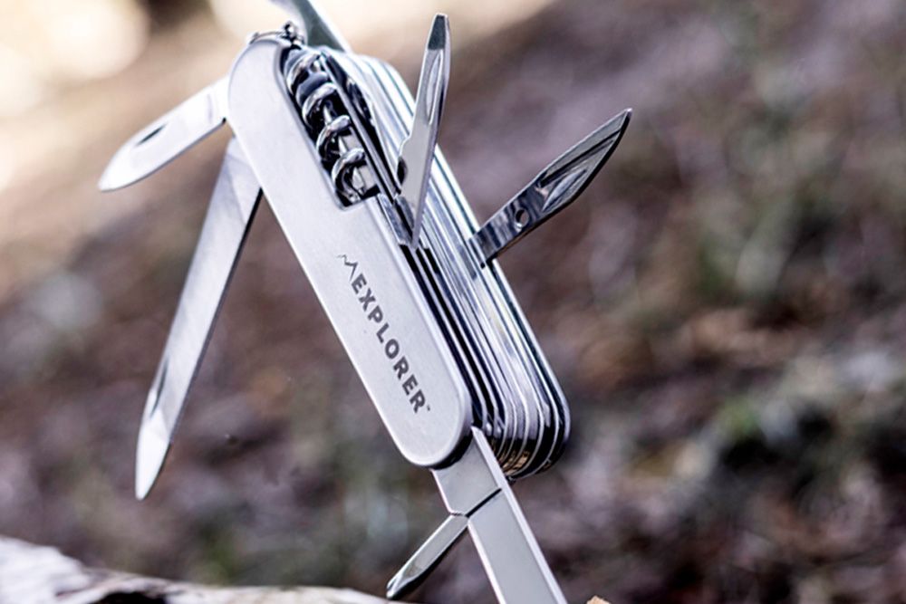 Den smarte og funktionelle lommekniv fra Explorer er et uundværligt værktøj på turen i det fri.