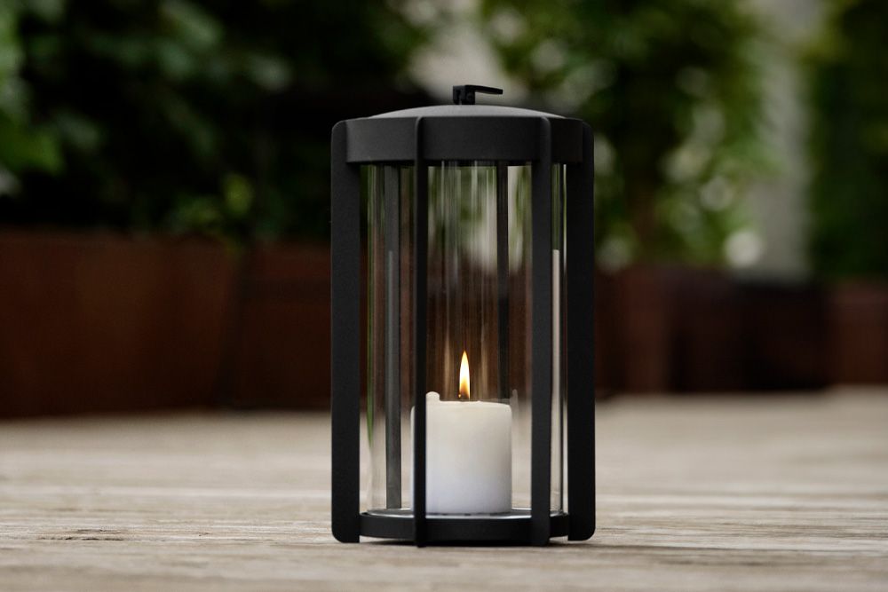 Denne moderne udgave af lanternen skaber en hyggelig stemning, når mørket falder på, uanset hvor den placeres på terrassen, altanen eller indendørs.