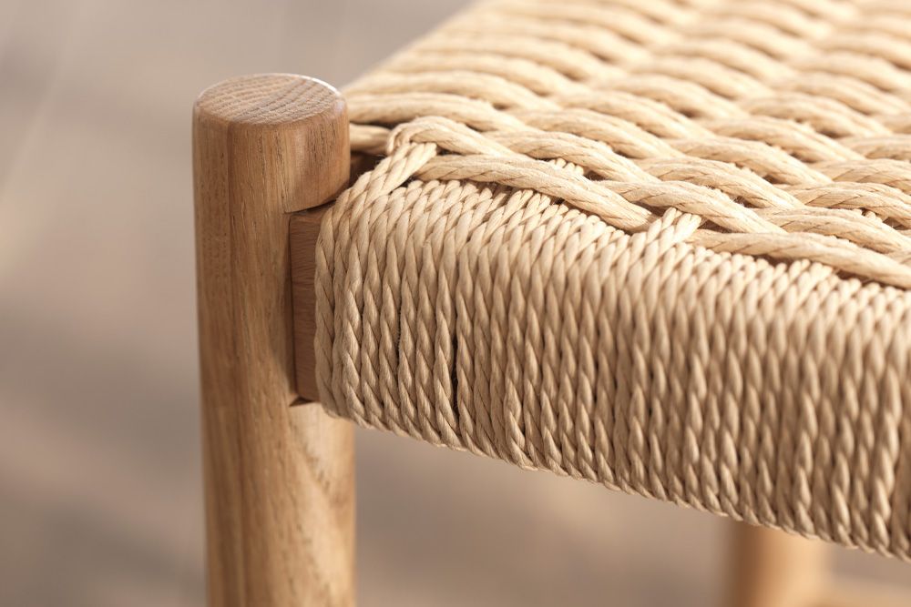 Fletsædet og det massive egetræ giver et smukt og organisk udtryk, hvor naturens materialer kommer til sin ret. Den håndværksmæssige kvalitet sikrer både holdbarhed og æstetik, hvilket gør skamlen til et tidløst valg i hjemmet.