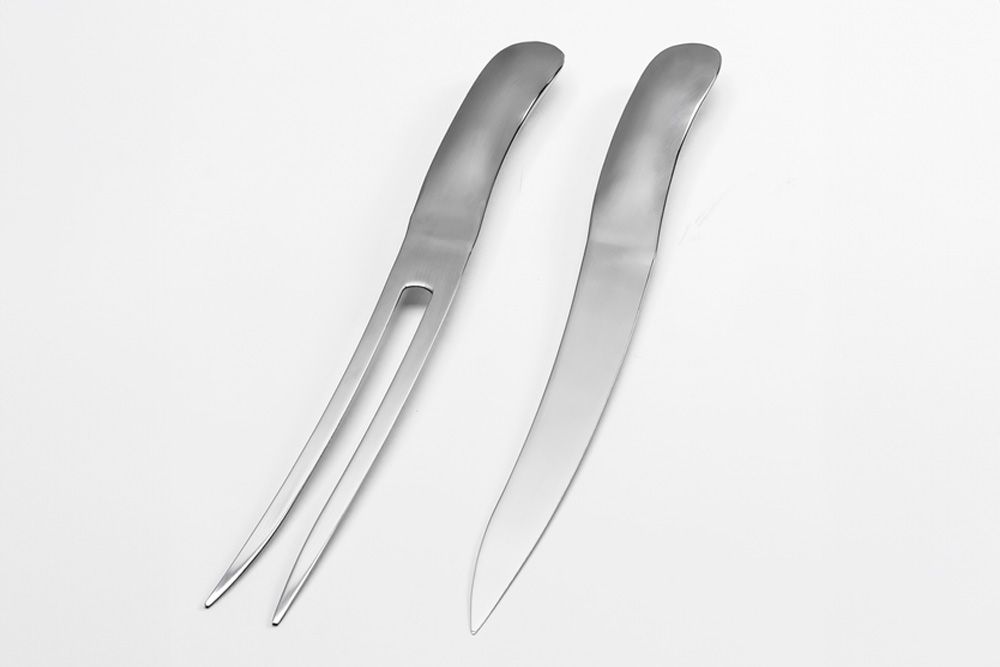 Forskærersættet er fremstillet i mat, poleret rustfrit stål, der både sikrer holdbarhed og udstråler elegance.