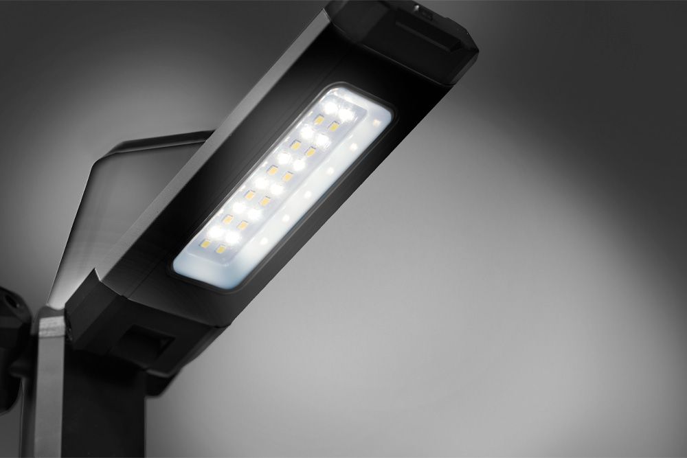 Den justerbare og transportable arbejdslampe giver fuld kontrol over lyset. Med sit smarte design kan højden tilpasses, og den kan foldes sammen for nem opbevaring eller transport.